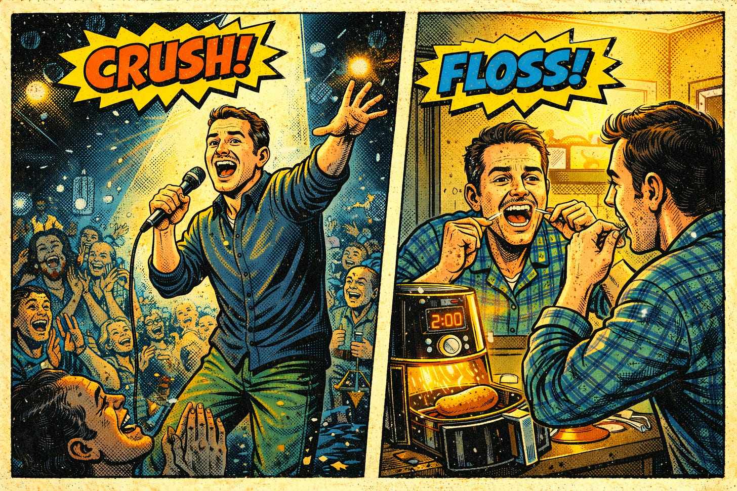 Picture a stand-up comic who destroys onstage, then goes home to tuck in his kids and floss. Where’s the bourbon? The divorce papers? The 3 AM existential spiral?