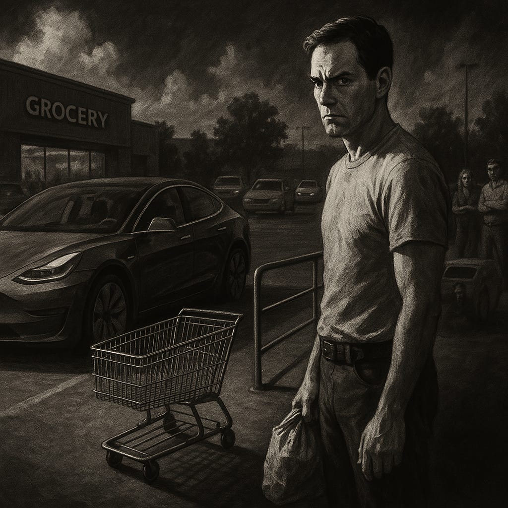 Let’s begin with a fantasy: You’re standing in a grocery store parking lot. A man loads the last bag of organic quinoa into his Tesla, closes the hatch, and locks eyes with the cart corral ten feet away. You freeze. This is it. Character time.